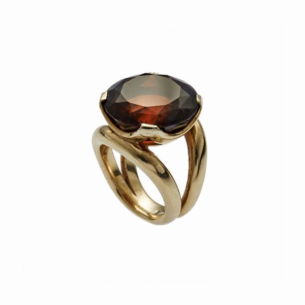 MATERIALE: oro giallo e quarzo DESCRIZIONE: anello in oro giallo con al centro grande quarzo sfaccettato MISURE: 12 PESO: ct quarzo 16,0, gr 20,7