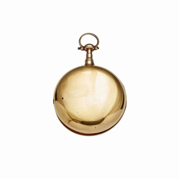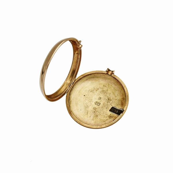 MATERIALE: oro rosa e oro giallo DESCRIZIONE: orologio da tasca con cassa e contro cassa in oro giallo liscio, corona di carica ad ore 12, quadrante in porcellana con numeri romani in smalto nero, lancette in oro giallo douphine , movimento a carica manuale, da revisionare, sulla contro cassa reca il marchio 18 kt MISURE: diam. mm 48 PESO: gr 150,2