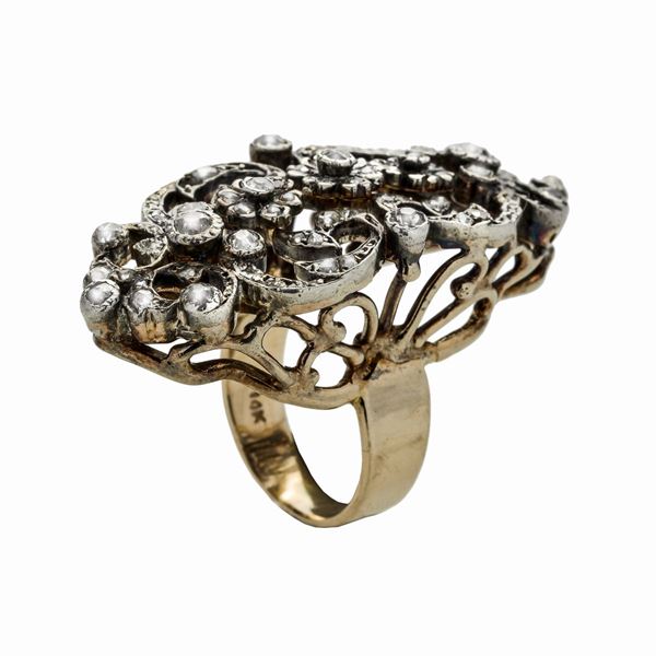 Anello in oro a basso titolo, argento e diamanti