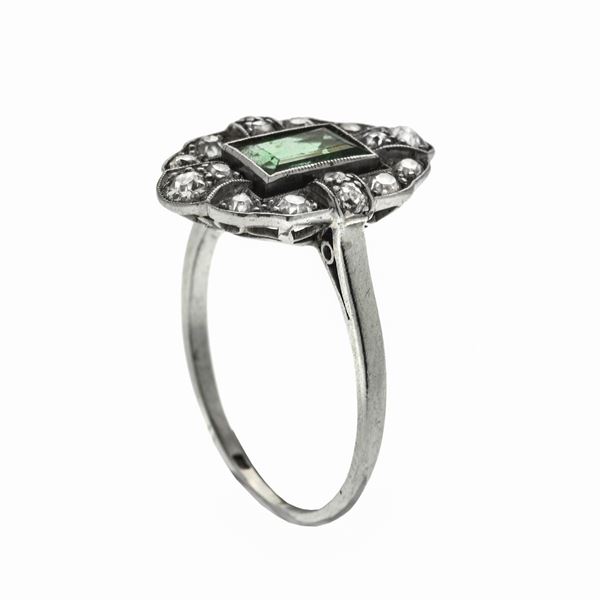 Anello in platino, smeraldo e diamanti