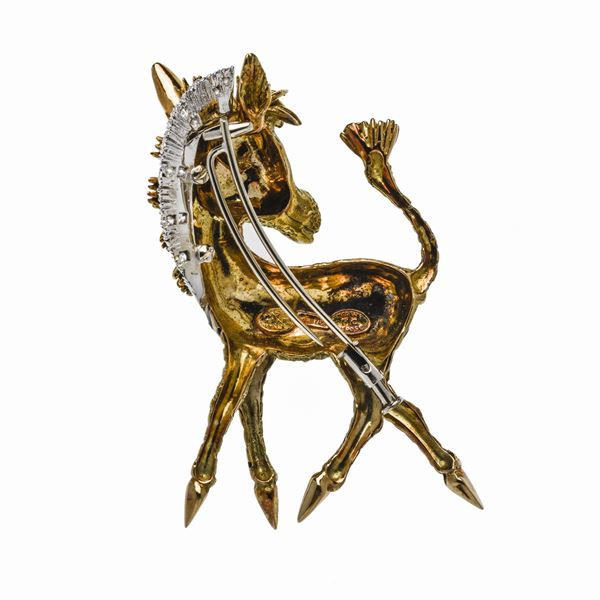 Spilla Zebra in oro giallo, oro bianco, smalti e diamanti Frascarolo