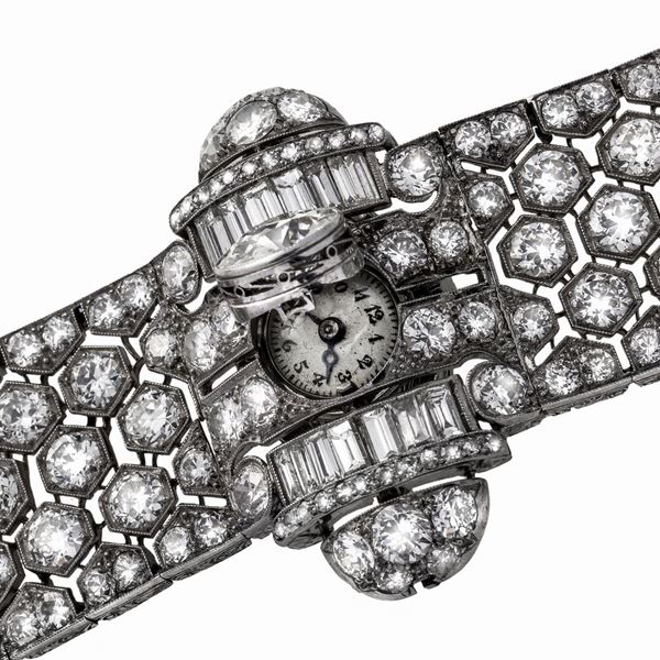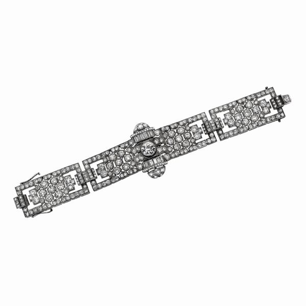 Importante bracciale orologio in platino e diamanti