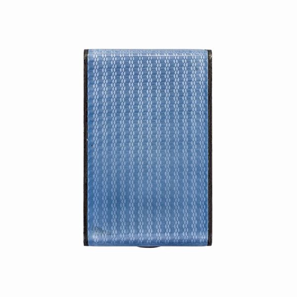 Porta sigarette in argento dorato, argento e smalto azzurro