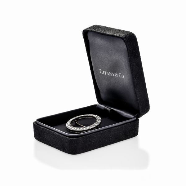 MATERIALE: oro giallo, palladio e diamanti DESCRIZIONE: spilla realizzata come un cerchio impreziosito da diamanti taglio brillante, corredato di scatola originale, firmato Tiffany & Co, reca il marchio 950 Palladium MISURE: diametro mm 30 PESO: diamanti ct 1.50, gr 6.1