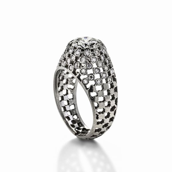 Anello solitario in oro bianco e diamanti