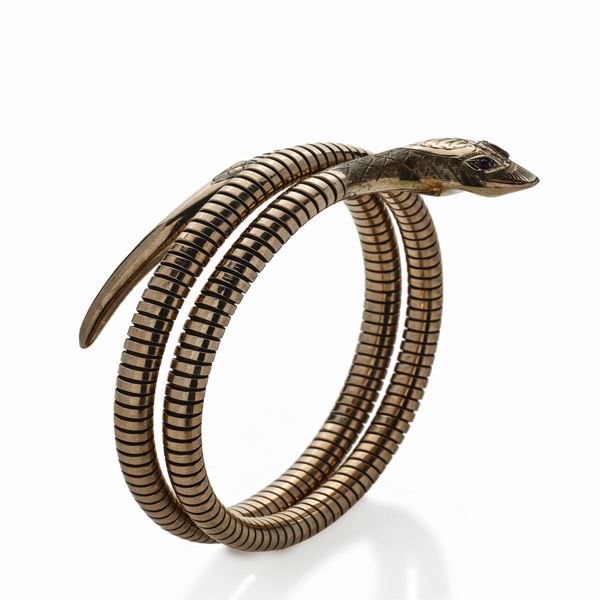Bracciale Serpente in oro giallo a basso titolo e rubini