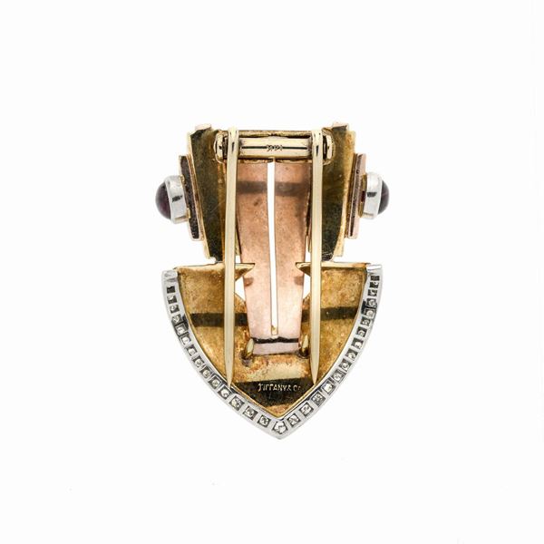 Clip in oro giallo 14 kt, oro bianco, oro rosa, rubini e diamanti Tiffany&Co