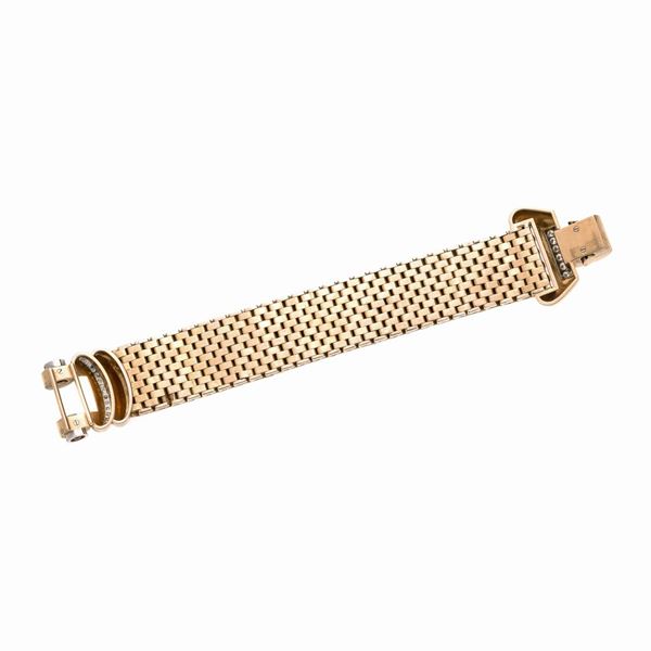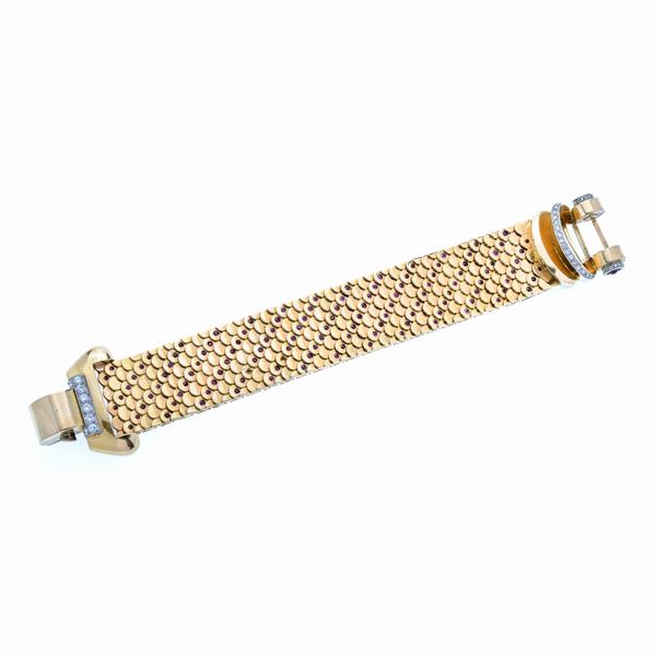 Grande bracciale a cintura oro rosa, oro bianco, diamanti e pietre rosse