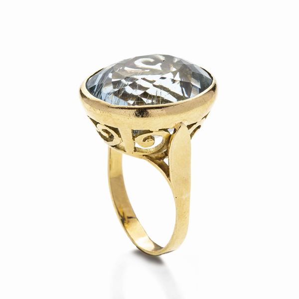 Anello in oro giallo e acquamarina