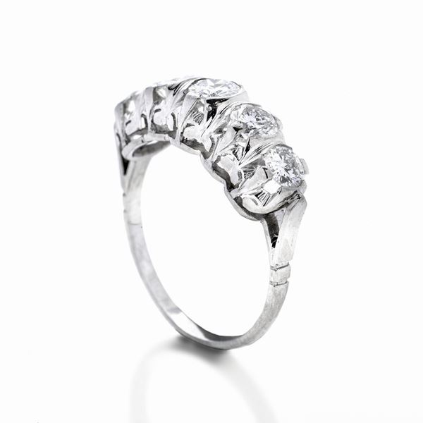 MATERIALE: oro bianco e diamanti DESCRIZIONE: anello veretta realizzato con cinque diamanti taglio brillante MISURE: anello 18 PESO: diaamnti ct 1.20 circa, gr 4.9