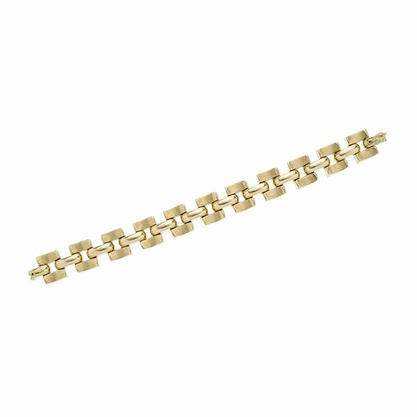 MATERIALE: oro giallo DESCRIZIONE: Bracciale in oro giallo realizzato con maglie rettangolari concave alternate a maglie convesse, reca il marchio 750 PESO: gr 31.6
