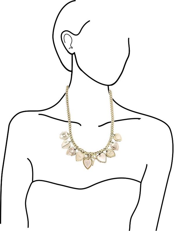 MATERIALE: oro giallo e oro a basso titolo DESCRIZIONE: lunga catena da orologio realizzata a maglie intrecciate impreziosita con nove charms, ciascuno realizzato come un cuore, tutti apribili MISURE: aperta cm 49.5 PESO: gr 112.9 complessivi