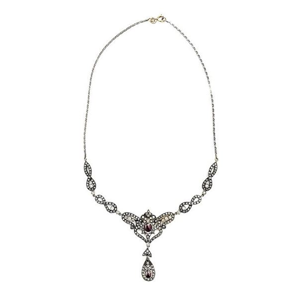 Collana in oro a basso titolo, argento, diamanti e rubini