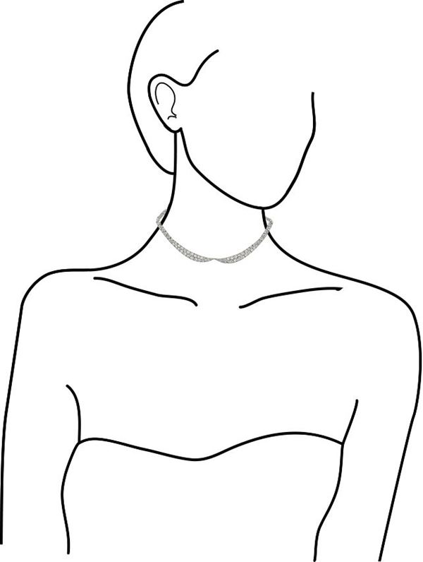 MATERIALE: oro bianco e diamanti DESCRIZIONE: girocollo semirigido realizzato come un colletto interamente impreziosito con diamanti taglio brillante, reca il marchio 750 MISURE: aperto cm 25 PESO: diamanti ct 4.80, colore G-H, purezza VVS-VS, gr 39.0