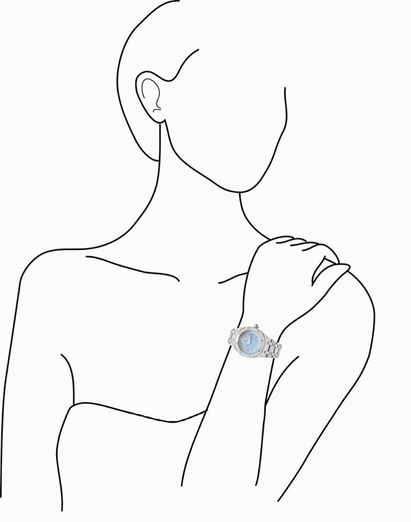 MATERIALE: in acciaio DESCRIZIONE: orologio da signora con cassa con fondello a vite, logo Royal Oak e n. 0233, lunetta con viti acciaio, quadrante in smalto azzurro con indici applicati e lancette a bastone, movimento al quarzo, bracciale a maglie acciaio con chiusura deployante MISURE: quadrante mm 36
