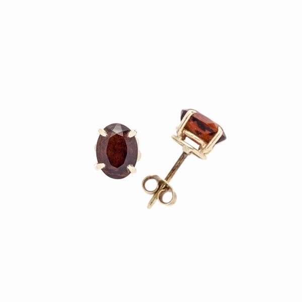 MATERIALE: oro giallo e granato DESCRIZIONE: paio di orecchini a clips, ciascuno con granato taglio ovale, recano il marchio 750 PESO: gr 2.1