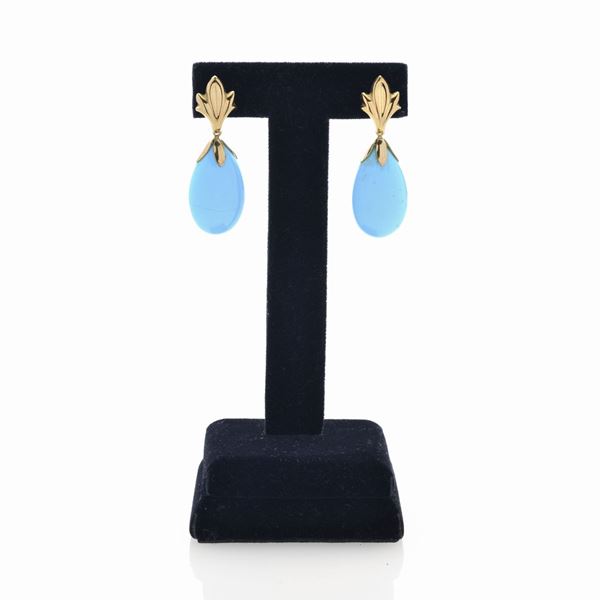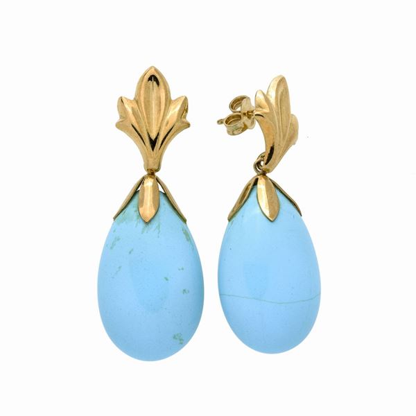 Paio di orecchini pendenti in oro giallo e pasta di turchese