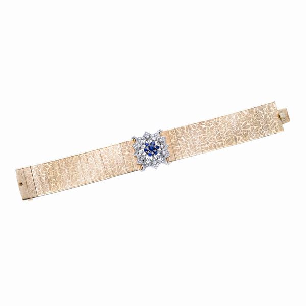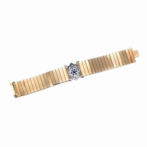 Bracciale in oro giallo, oro bianco, diamanti e zaffiri
