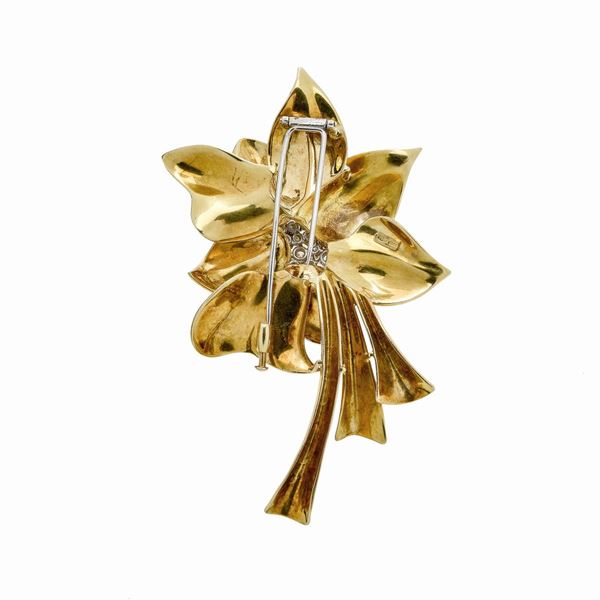 Spilla Fiore in oro giallo, oro bianco e diamanti