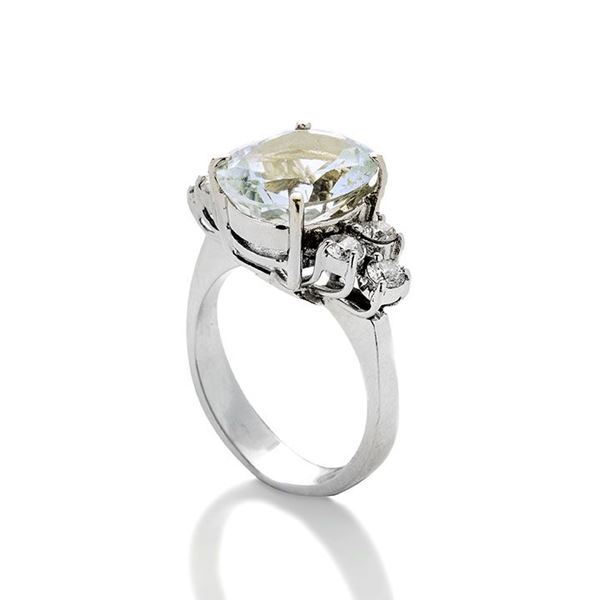 Anello in oro bianco, acquamarina e diamanti