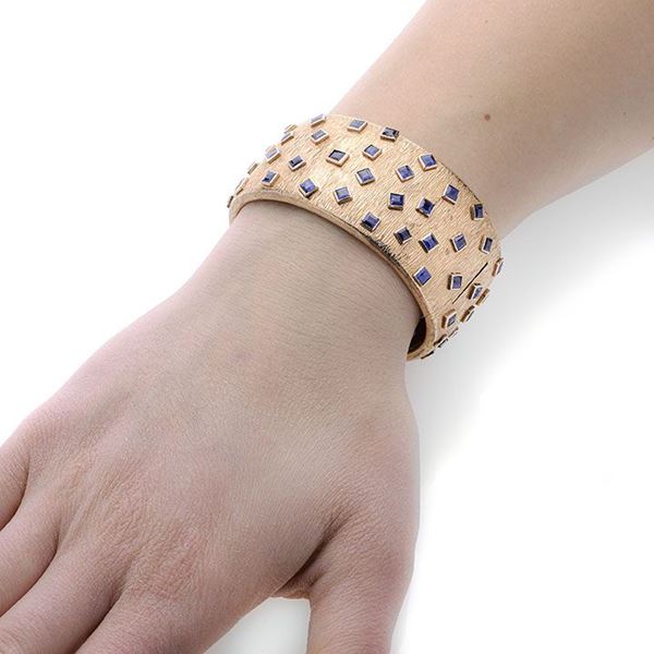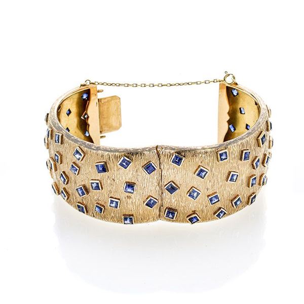Grande bracciale rigido in oro giallo e zaffiri