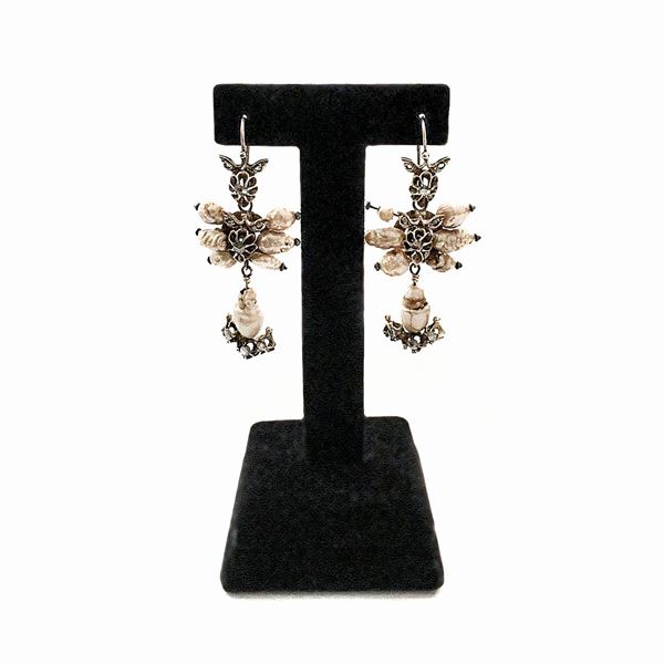 Parure in oro a basso titolo, perle di fiume e diamanti