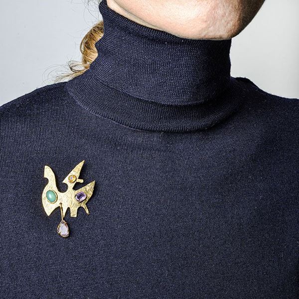 Spilla in oro giallo e pietre semipreziose Mariella Forlivesi