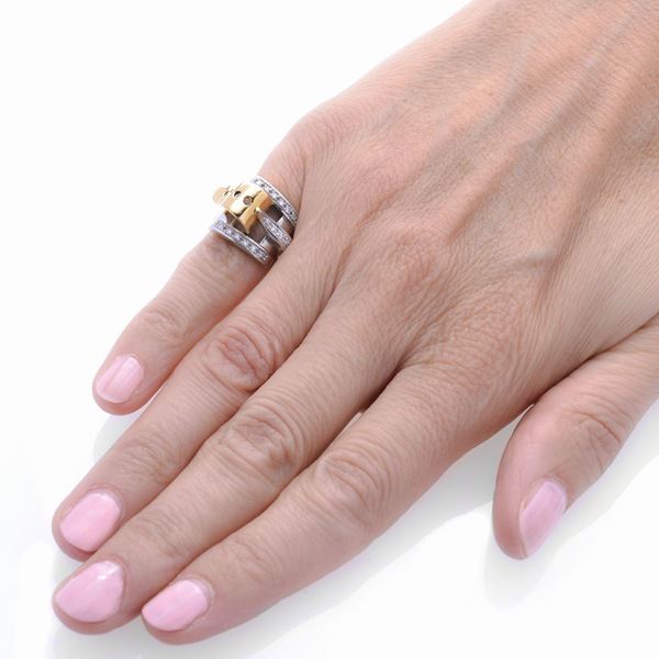 Anello da mignolo in oro giallo, oro bianco e diamanti