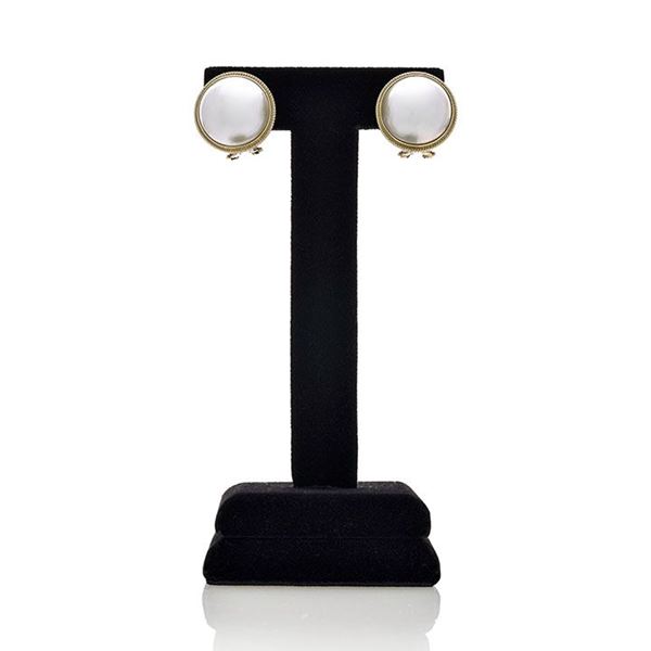 Paio di orecchini a clips in oro giallo e perle mabè