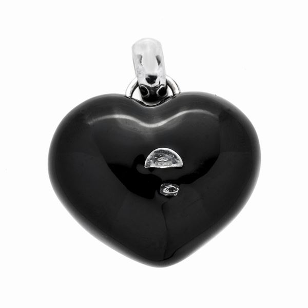Pendente Cuore in oro bianco, smalto nero, madreperla e diamanti