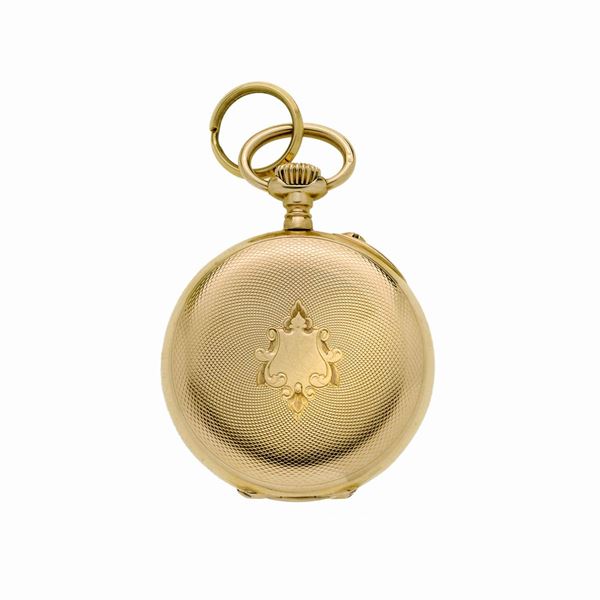 MATERIALE: oro giallo DESCRIZIONE: orologio da tasca con cassa in oro giallo, quadrante in smalto bianco con numeri romani e lancette a spada, quadrante ausiliario ad ore sei, cassa posteriore incisa con motivo geometrico centrato da cartiglio, movimento a carica manuale, meccanismo firmato Vacheron & Costantin, corredato di scatola originale, reca il marchio 18k, da revisionare MISURE: diametro mm 32 PESO: gr 30.5