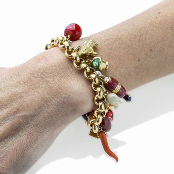 Bracciale con charms in oro giallo, smalti colorati e pietre dure