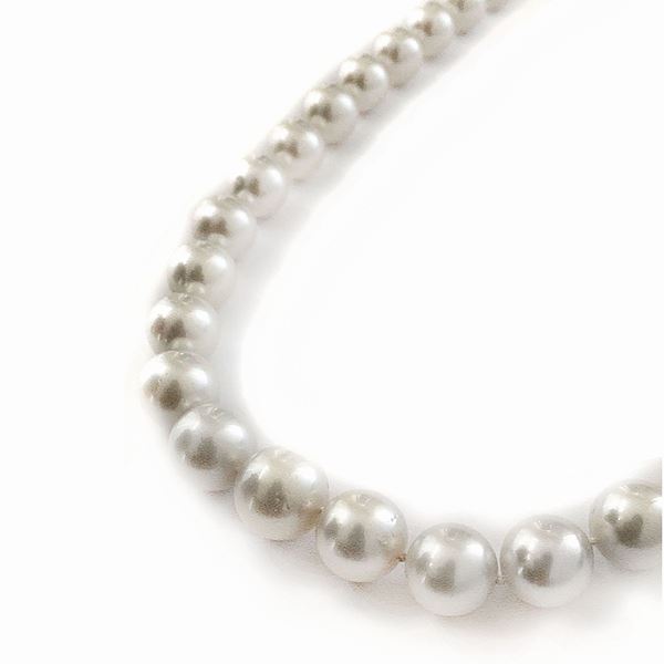 MATERIALE: perle australiane, oro bianco e diamanti DESCRIZIONE: filo composto da 39 perle leggermente degradè con fermezza ovale impreziosita con diamanti, quest'ultima reca inciso il marchio 750 MISURE: aperta cm 49.5 PESO: perle da mm 10 a mm 13.4, gr 84.6