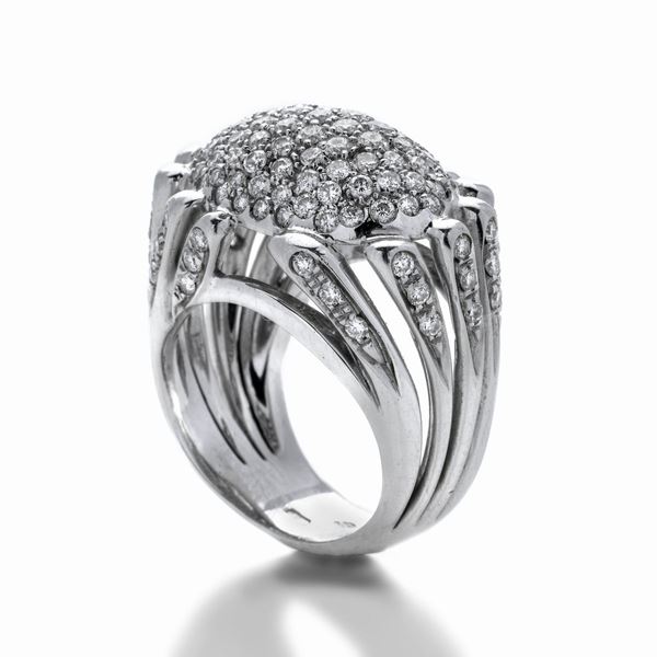 Grande anello in oro bianco e diamanti