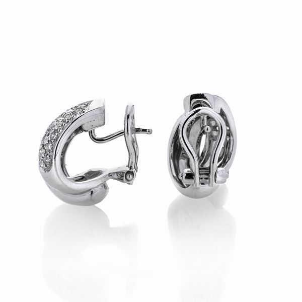 MATERIALE: oro bianco e diamanti DESCRIZIONE: paio di orecchini a monachella, ciascuno realizzato come un nodo, leggermente bombate, impreziosito con pavè di diamanti MISURE: 1 x 1.2 h PESO: gr 12.6