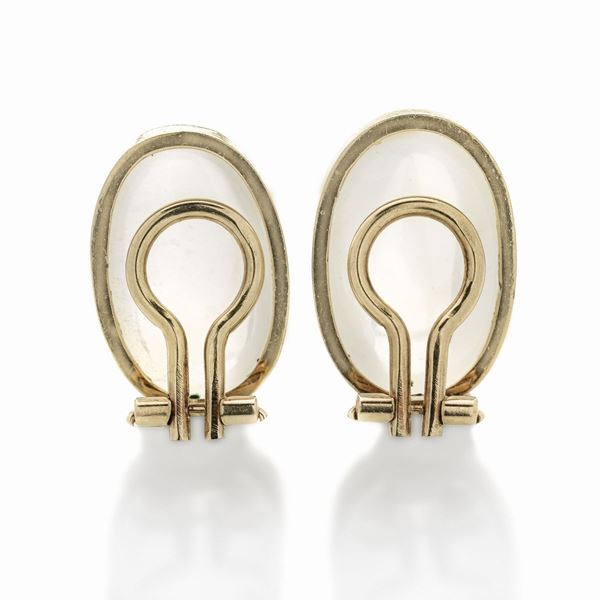 Paio di orecchini ovali a clips in oro giallo e pietra di luna