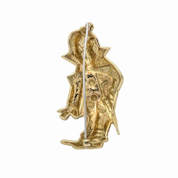 Spilla pagliaccio in oro giallo, diamanti e smalti colorati