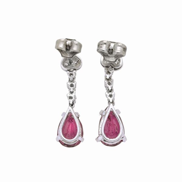 Paio di orecchini pendenti in oro bianco, diamanti e tormaline rosse