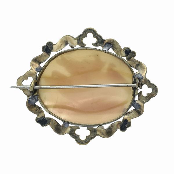 Spilla con Cammeo in conchiglia e oro a basso titolo