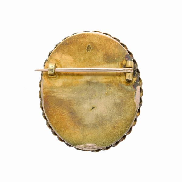 Spilla in oro a basso titolo e miniatura dipinta