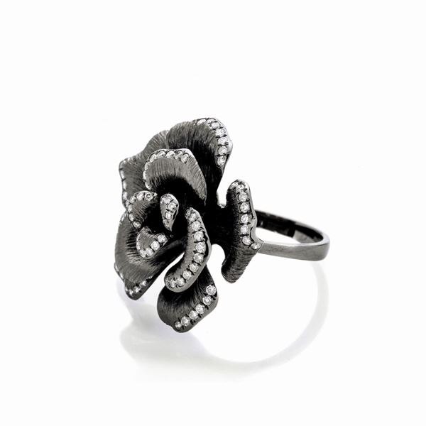 Anello Rosa in oro brunito e diamanti