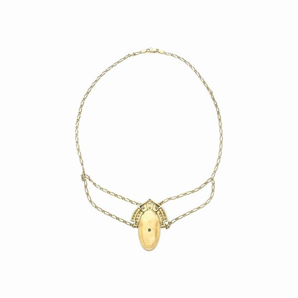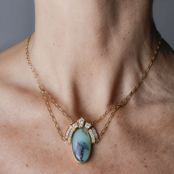 Girocollo in oro giallo, diamanti e pietra dura verde