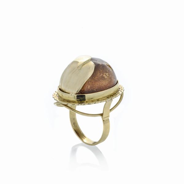 Grande anello in oro giallo e ambra