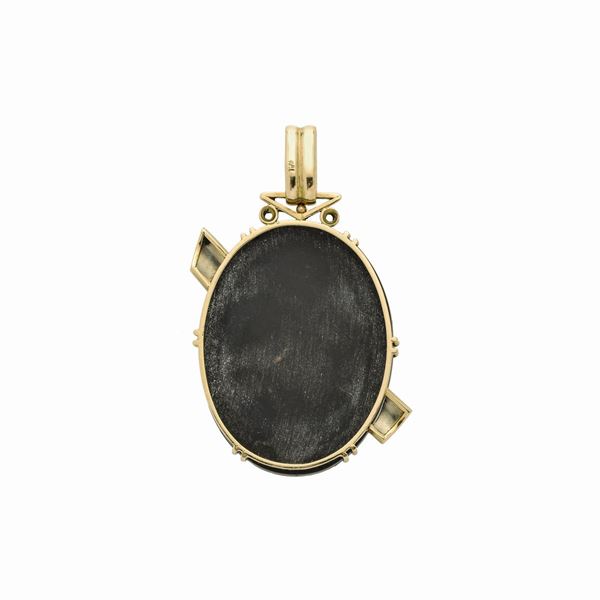 Grande pendente in oro giallo, oro bianco e doppietta di opale