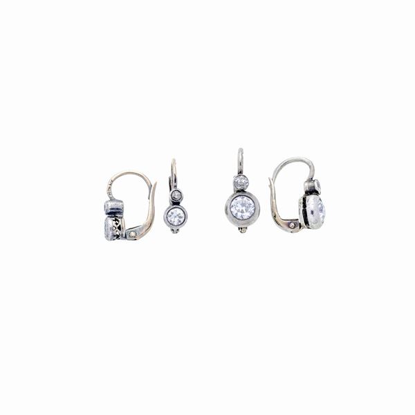 Lotto di due paia di orecchini a monachella in platino, oro a basso titolo e diamanti
