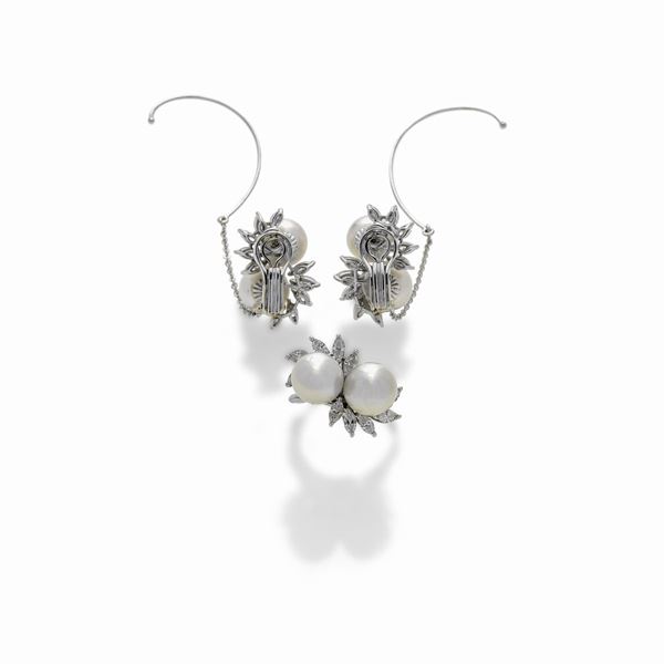 Parure in platino, oro bianco, diamanti e perle coltivate