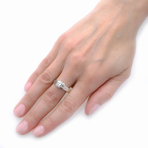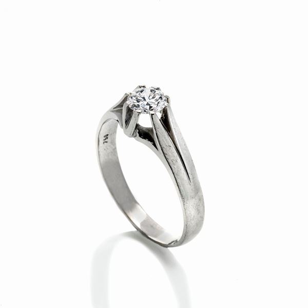 Anello solitario in oro bianco e diamante