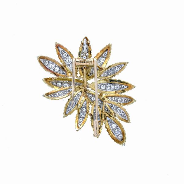 Clip Floreale in oro giallo, oro bianco e diamanti, firmata Vourakis