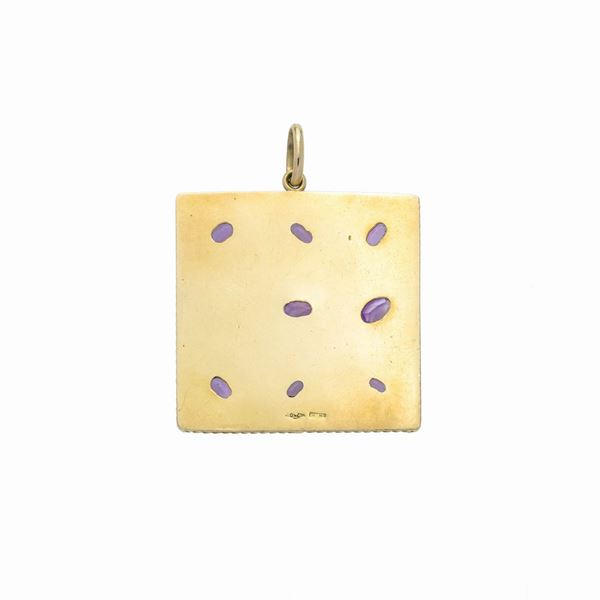 Grande pendente quadrato in oro giallo e ametista