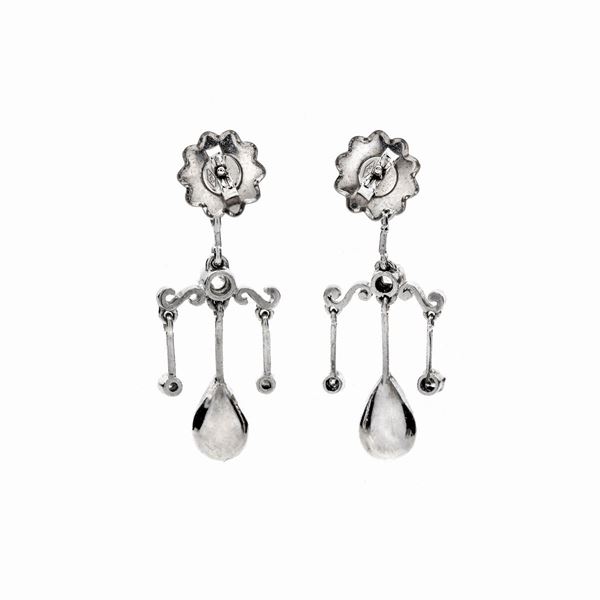 Paio di orecchini pendenti in oro bianco, argento e diamanti